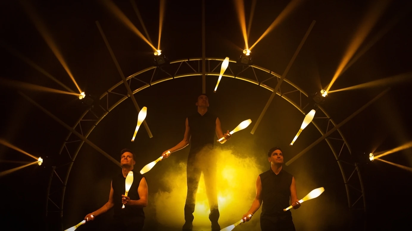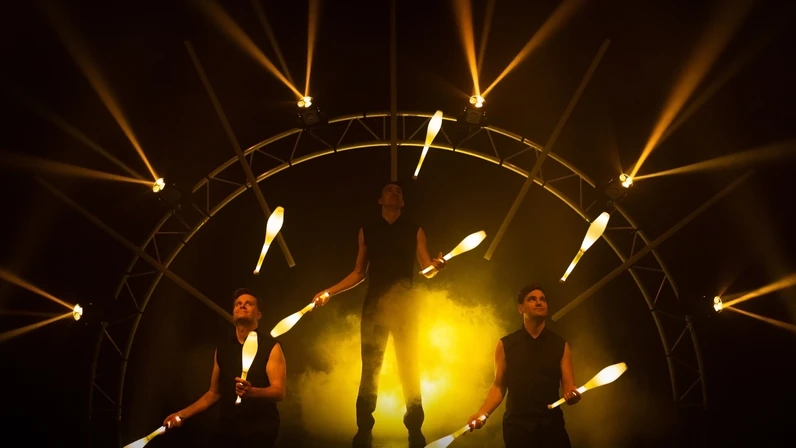 Jonglage des 21. Jahrhunderts: ein unvergesslicher Farbrausch mit Lichteffekten und Live-Musik!